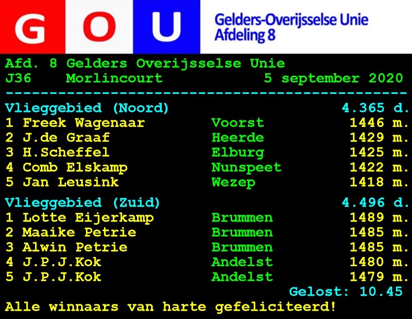 - Locatie: Blaricum Snelheid/Jonge duiven